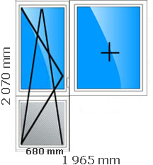 Размеры: общая высота 2 070 мм, общая ширина 1 965 мм, ширина двери 680 мм.