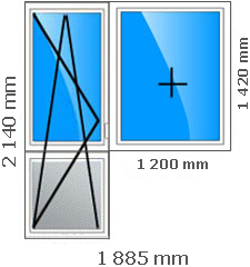 Размеры: общая высота 2 140 мм, общая ширина 1 885 мм, ширина окна 1 200 мм.